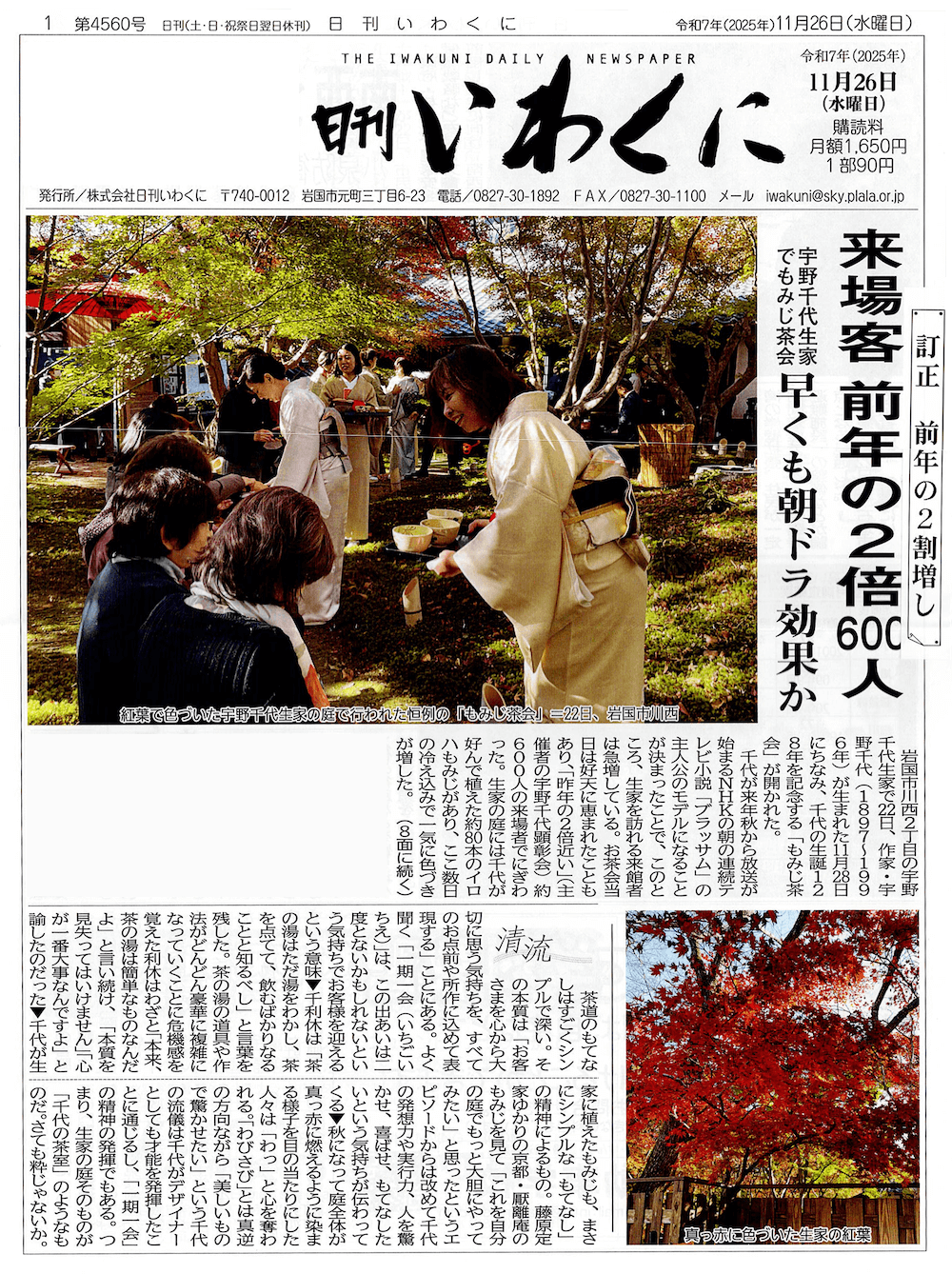 2023年11月29日 日刊いわくに もみじ茶会